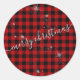 Modern Silver Script Buffalo Plaid Merry Christmas Classic Round Sticker