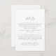 This modern silver script wedding details enclosure card is perfect for a minimalist wedding. The simple silver grey colour design features unique industrial lettering typography with modern boho style. Customisable in any colour. Keep the design minimal and elegant, as is, or personalise it by adding your own graphics and artwork.