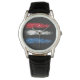 * United States Simple Red White Blue abstract American Flag on a black face patriotic MEN's WATCH