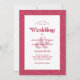 Magenta Red Modern Abstract Leaves Pattern wedding design features a modern abstract leaves pattern on a trendy magenta red background. Bold calligraphy and script are in magenta on a white background and feature the couple's names artfully positioned over a larger coordinating ampersand. A trendy template complements the unique calligraphy design. This design is offered exclusively by Invitation Suites. The back of the card repeats the leaf pattern. Be sure to see the collection link on this page to view all of the matching items! Please direct questions or custom requests to invitationsuites@gmail.com.