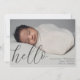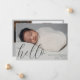 This is a chic, modern and simple baby announcement template. On the front is space for your favourite full sized photo with elegant 'hello' calligraphy overlay. On the reverse there is space for a further 2 photos and a personal message. Customise with ease for that unique keepsake for family and friends to enjoy for years to come.