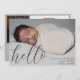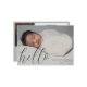 This is a chic, modern and simple baby announcement template. On the front is space for your favourite full sized photo with elegant 'hello' calligraphy overlay. On the reverse there is space for a further 2 photos and a personal message. Customise with ease for that unique keepsake for family and friends to enjoy for years to come.