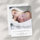 Custom-designed baby shower photo thank you cards featuring modern white typography overlay with personalised message and name.