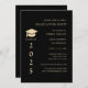 Featuring a bold black theme with modern and elegant details, this invitation is ideal for a high school grad, homeschool graduation, or a virtual graduation event. Customise your Class of 2025 graduation announcement with ease, whether it's for a senior graduation, school milestone, or a doctor's graduation.