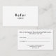 Modern simple black and white referral card. An elegant design that projects a confident company image. Perfect for a wide range of professions including; spas, beauty treatments, hair and beauty consultants, stylists, makeup artists, beauticians, hairstylists, personal trainers, to name a few! Personalise by adding your contact information on the reverse with your special discount offer. Designed by Thisisnotme©