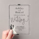 This elegant black-and-white acrylic wedding invitation is perfect for a modern wedding. The simple design features elegant black calligraphy, a chic black frame, and a bride-and-groom illustration on a clear transparent background. The invitation card includes the wedding details on the back instead of paying for a separate enclosure card.