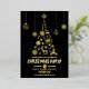 This Modern Black and Gold Real Foil Elegant Christmas tree Party design features a Christmas tree shape filled with a poinsettia flower, a holly and berries branch, a candy cane, a pine, snowflakes and stars, a Christmas hat, a stocking, a reindeer and much more, surrounded by snowflakes and ornaments. The back of the invitation is a festive pattern of the same Christmas illustrations. You can customise the background colour. This design is perfect for a Christmas party. You can customise all the details for your event. See the whole matching collection!