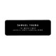Modern return address labels featuring a simple design with your business name in a traditional white bold sans seif font and two lines of text for your return address in a regular sans serif font, over a black background. These minimalist return address labels have a plain and basic layout yet still add a professional touch to your envelopes.