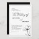 This modern black and white wedding invitation features black elegant calligraphy, black frame and flower, with elegant solid black backing.