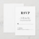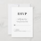Designer Modern Simple Black White RSVP Wedding Response Card by Simon & Grace. Shown black text on white with a solid ivory white back. All text, fonts, and colours may be customised by you using the tools provided within in Zazzle's customisation and personalisation menus. We invite you to visit our Zazzle store, Simon & Grace, to view matching products and more. Please contact us if you require any assistance.