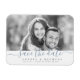 Modern script "save the date" in dusty blue colour, with couple's photo, simple and elegant. Great photo save the date magnet for modern wedding and other events.