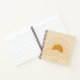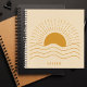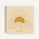 Modern Simple Boho Sun Minimalist Notebook. On the back cover of this notebook, there is "good vibes" bubble letter script.