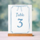 Modern Simple Bow Wedding Dusty Blue Table Number Acrylic Sign