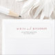 Elegant minimalist typography script her and his names wedding return address labels in simple dusty rose spring summer colour.