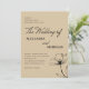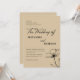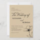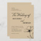 This elegant, simple, minimalist wedding invitation features black modern text and flower with a delicate neutral warm brown beige at background.