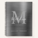 Modern Simple Brushed Metal Silver Grey Monogram Notebook