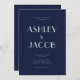 Beautiful, elegant and simple, wedding invitation with a beautiful navy blue background. Fully customisable with your wedding details of names, dates, location and colours to match your wedding theme.
