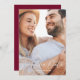 Wedding save the date photo double-sided card with full bleed photo, This design features a modern burgundy simple photo elegant, calligraphy script traditional modern, chic script stylish classic wine, simple minimalist typography marsala, elegant modern calligraphy trendy, autumn summer winter spring fall, classy one couples photo engaged, a vertical one couples photo picture, with a full bleed photo layout template, a simplistic contemporary elegance style