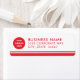 These custom branded white business return address labels feature your professional business logo design. Simply add your company logo to the round red and white placeholder image and personalise with your business name and address.