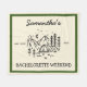 personalized modern simple camp bachelorette party blanket in neutral green and white with a tent in the forest is perfect as a bachelorette party photo backdrop. Celebrate your bridal shower in style with the perfect camping weekend party theme, the perfect theme for the nostalgic vintage 70s bride and her bridesmaids.