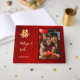 This Chinese wedding guest book features an artistic gold double happiness symbol on a shimmering ruby red background. With your photo, bride and groom names in an elegant handwritten script and the wedding date.