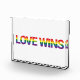 Modern, colourful, vibrant typographic graphic design of saying "Love Wins" in rainbow flag colours. Simple, bold, vibrant and urban graphic art.