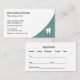 Modern Dental office business card design created with a teal coloured modern design element and tooth symbol displayed in a low key way and organised layout including an appointment template on the back making your cards serve as appointment cards for your clients presented on rounded corner business card paper stock.