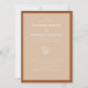 This elegant, modern, minimal wedding invitation features white flower and calligraphy with trendy delicate earth tones ,Terracotta palette at the background.