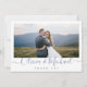 Modern script couple's names in blue colour, with couple's photo, simple and elegant. Great thank you cards for modern wedding and other events.