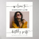 A bold, stylish photo welcome sign designed for milestone birthday parties. Featuring modern handwritten script paired with a crisp serif font, this layout highlights your favorite portrait and celebrates the guest of honor’s big moment in sleek, minimal style.