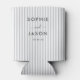 Modern Simple Elegant Wedding Script Striped Can Cooler