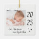 Modern "first Christmas as a big brother" ceramic ornament with a simple design featuring the year and a custom photo. Double sided.