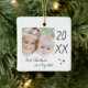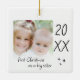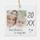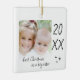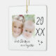 Modern "first Christmas as a big sister" ceramic ornament with a simple design featuring the year and a custom photo. Double-sided design.