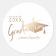 Trendy White and Gold Graduation Party Favours Stickers Featuring Graduate Cap and stylish calligraphy script in gold metallic faux foil. White Clean Background, customisable in any colour.