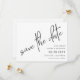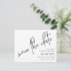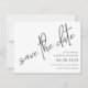 A simple design with contemporary style, this Save the Date card has modern handwritten type face spelling out "Save the Date" and placed diagonally on the card. This type face is paired with a crisp serif type face in an easy-to-use text template for personalising with your wedding info. Matching wedding invitations and other items are available using this design.