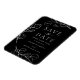 Modern minimalist eucalyptus leaves black and white unique artist created wedding save the date invitation magnet to remind friends and family to keep the date free. Beautiful simple foliage, stylish minimalistic greenery line art drawing with white elegant typography script on a black background. A simplistic botanical design that is easy to personalise using the easy to use template. Original artwork by artist Catherine Sweetman
