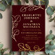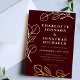 Elegant minimalist wedding invitation featuring deep burgundy wine tones and luxurious gold foil eucalyptus sprig line art. This modern botanical wedding invitation showcases delicate eucalyptus leaves drawn in refined gold foil line art, creating a timeless and romantic aesthetic. The rich burgundy background adds warmth and sophistication, making it perfect for classic, modern, or minimalist wedding themes.