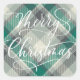 Modern Simple Merry Christmas Green Plaid Square Sticker
