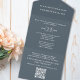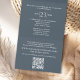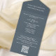 This design features a budget dusty grey QR code, with a modern website online rsvp response, a minimal guest response via the website, a trendy simple typography script font, a trendy stylish calligraphy ampersand, budget-friendly wedding invitations, a QR code rsvp reply website, an elegant seal and send invites, a simple tri-fold guest response, a simplistic elegance minimalist minimal