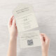This design features a budget sage green QR code, with a modern website online rsvp response, a minimal guest response via the website, a trendy simple typography script font, a trendy stylish calligraphy ampersand, budget-friendly wedding invitations, a QR code rsvp reply website, an elegant seal and send invites, a simple tri-fold guest response, a simplistic elegance minimalist minimal