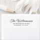 Modern yet elegant, simple yet chic return address label in minimalist script and modern typography, perfect for weddings on plain white background (customisable under "customise further".
