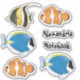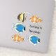 This design features modern simple minimalist tropical fish sticker design, with ocean nautical sea watercolor labels, under the sea cute life, sophisticated under the sea, cute coastal beach summer aquatic, sea animal marine coastal nature, colourful Florida clownfish blue, blue tang tropics the Caribbean, a coastal beachy classic beach design, tropical fish kiss cut sticker