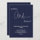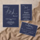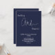 This elegant navy blue wedding invitation is perfect for a modern wedding. the simple design features elegant white calligraphy on a blue background.