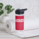 Modern, simple and personalised water bottle in red with white typography. An essential back to school supply for kids and teachers alike. Environmentally friendly, use it everyday to stay hydrated. Pick a colour and personalise with your name.