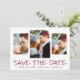 This modern save the date card is perfect for three of your favourite engagement photos in the front.