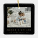 Modern Simple Photo Merry and Bright Christmas Ceramic Ornament