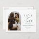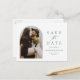 The Modern Simple Photo Save The Date Postcard showcases an elegant design with a personal touch, featuring your favourite photo paired with simple, chic green calligraphy. This minimalist boho-inspired postcard is perfect for couples looking to make a statement, and it's easily editable—feel free to contact me if you need any assistance!
