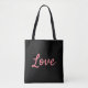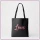 Beautiful, minimalist tote bag advertising the most important thing of all: love. Striking pink/black colour combination.