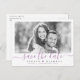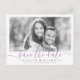 Modern script "save the date" in purple colour, with couple's photo, simple and elegant. Great photo save the date postcards for modern wedding and other events.