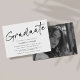 This is a modern and simple graduation announcement. It uses a minimal and stylish handwritten script design in classic black and white, with a photo on the back. This design applies a black and white filter to your photo, to remove or change this press the blue button to edit your design, then select the photo and edit the filter settings accordingly. Please contact the designer for any queries about this design.